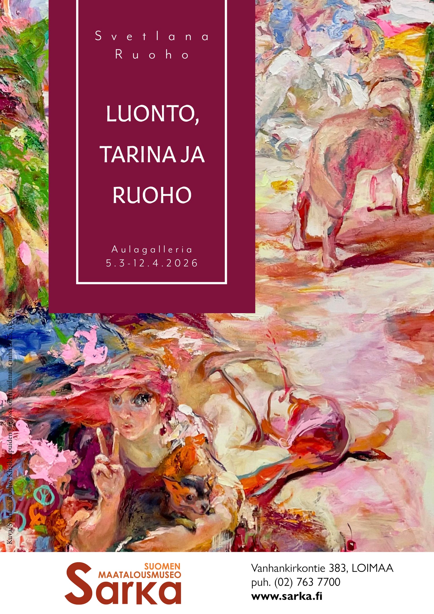 Svetlana Ruoho esittelee Suomen maatalousmuseo Sarkan näyttelyssä Luonto, tarina ja Ruoho